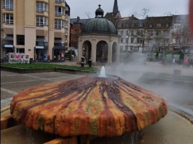tonnenschweren Brunnenstein mit einer nachwachsenden Mineralienschicht überziehen. Da die Schicht jährlich mehr als fünf Zentimeter anwächst, muss sie immer wieder entfernt werden und findet in