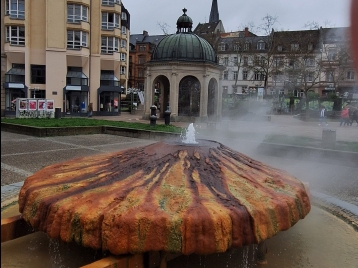Nach einer vorsichtigen Geschmacksprobe an der heißen Mineralsalzbrühe ging es dann weiter durch die einladende Fußgängerzone, vorbei an Stadtschloss mit Hessischem Landtag, über den Rathausplatz